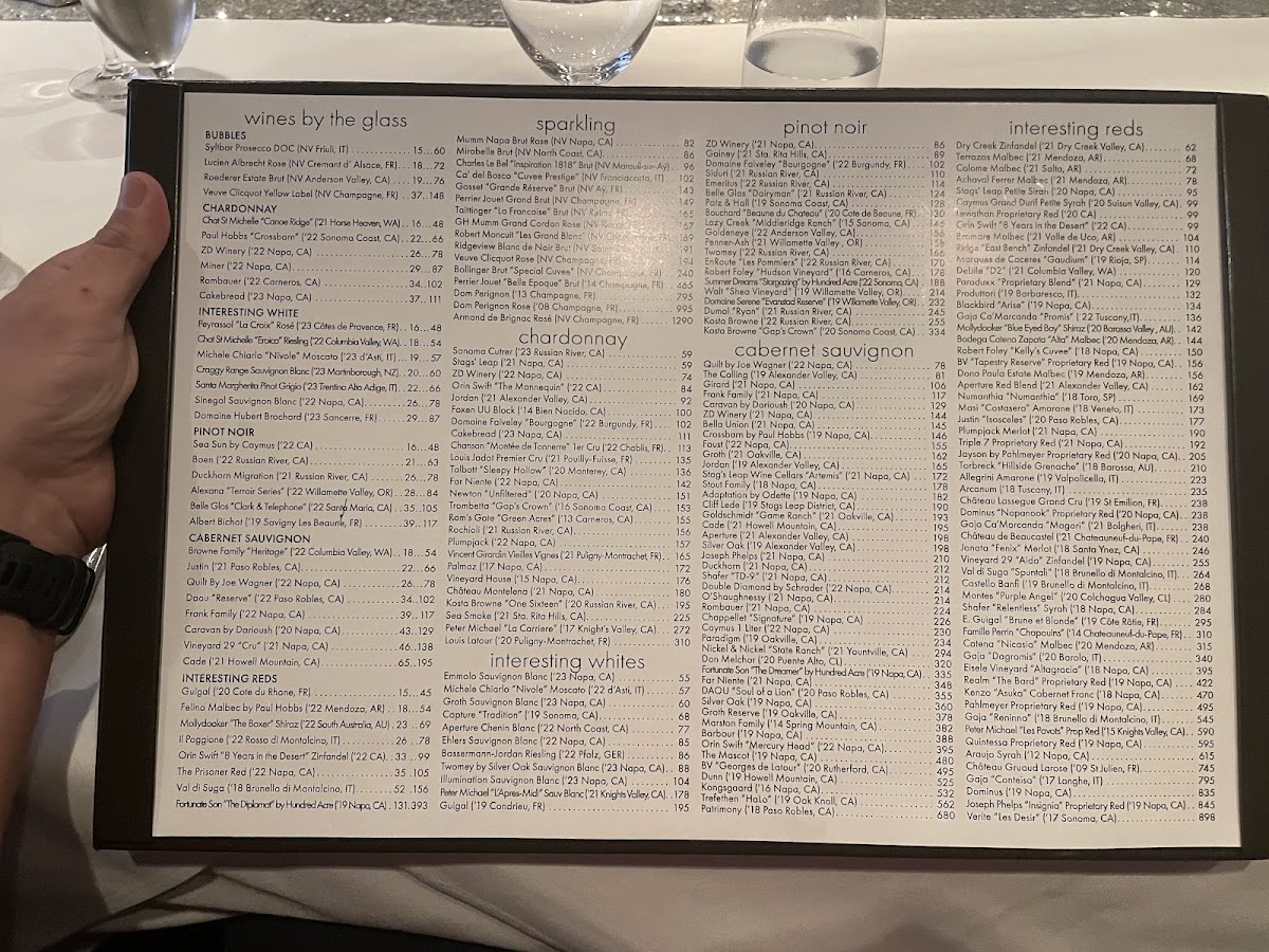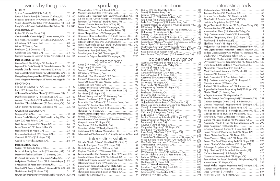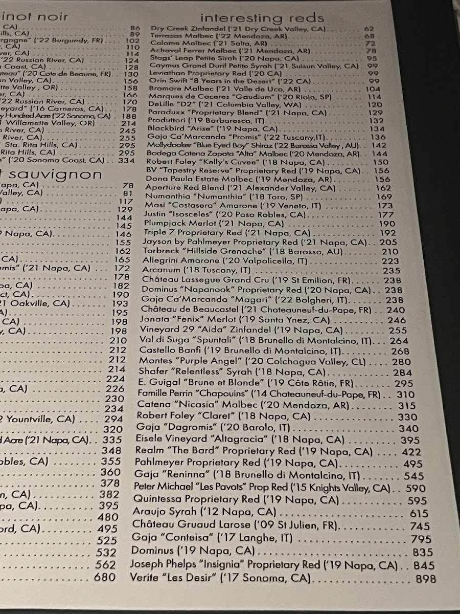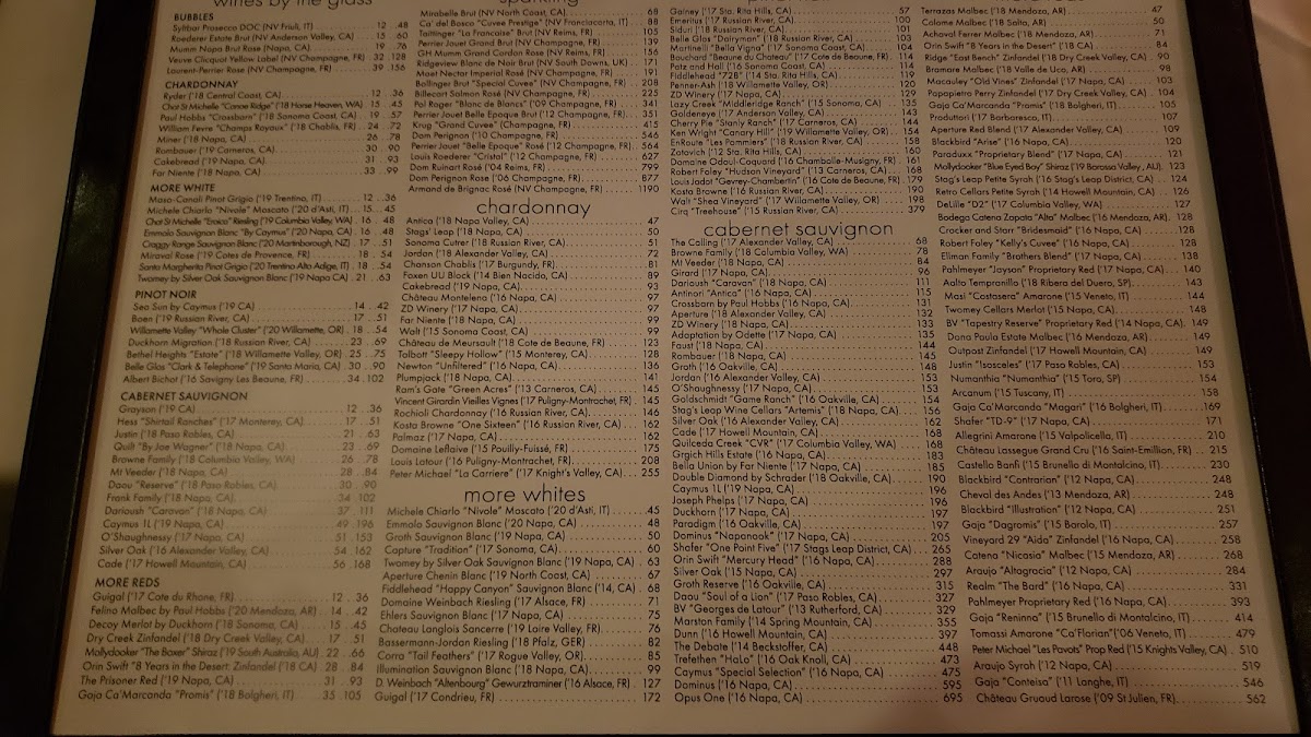 Great selection of Liquors and wines at reasonable prices. the steaks are cooked perfectly and very tender. The team waitering concept Works beautifully as there is someone always attending to the table
